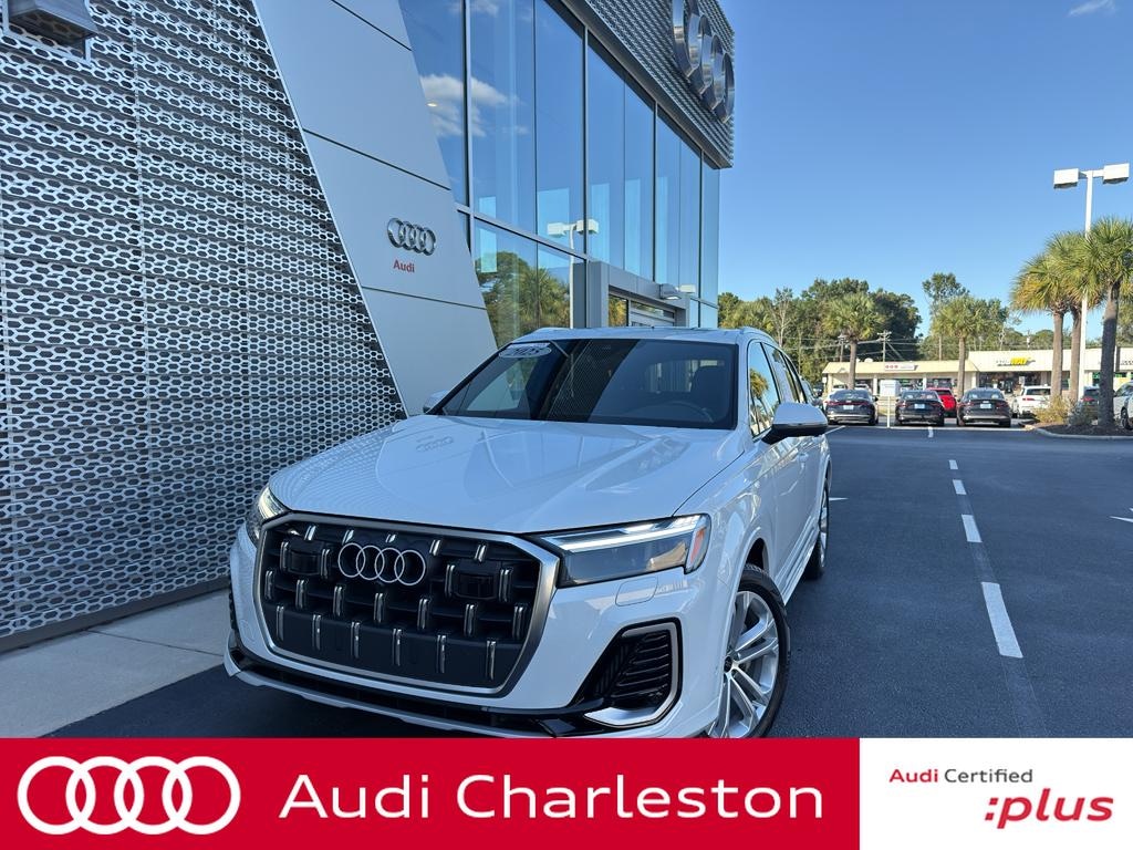 Discover refined performance and modern technology in this immaculate 2025 Audi Q7 Premium Plus. With just 3,184 miles, this luxurious SUV combines a responsive 3.0L V6 engine and confident AWD for smooth, capable driving in any condition. The Premium Plus trim elevates comfort and convenience with premium leather seating, a panoramic sunroof, and a thoughtfully designed cabin that effortlessly balances driver-focused controls with passenger-friendly amenities. Stay connected and informed on every journey with built-in Navigation, Apple CarPlay, and Android Auto, providing seamless smartphone integration for maps, media, and messaging. Hands-free Bluetooth enables safe calls and audio streaming, while Lane Departure Warning adds an extra layer of safety by alerting the driver to unintended lane changes. The Audi Q7âs refined suspension and precise steering deliver a composed ride, whether navigating city streets or cruising on the highway. Practicality meets versatility with spacious three-row seating and generous cargo capacity, making this Audi an ideal choice for families and those who appreciate luxury with utility. Meticulously maintained and ready for immediate enjoyment, this Audi Q7 Premium Plus offers an exceptional blend of performance, safety, and cutting-edge features. Schedule a test drive today.