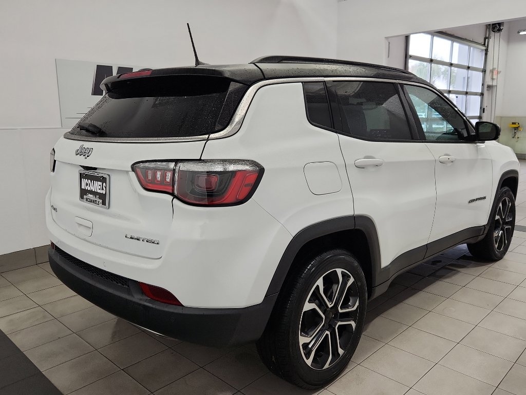 When you encounter slick or muddy roads, you can engage the four wheel drive on this vehicle and drive with confidence. This model has auto-adjust speed for safe following. This unit offers Android Auto for seamless smartphone integration. This Jeep Compass offers Apple CarPlay for seamless connectivity. This Jeep Compass offers Automatic Climate Control for personalized comfort. The high efficiency automatic transmission shifts smoothly and allows you to relax while driving. Protect it from unwanted accidents with a cutting edge backup camera system. This vehicle is a certified CARFAX 1-owner. It has a clean CARFAX vehicle history report. Set the temperature exactly where you are most comfortable in this Jeep Compass. The fan speed and temperature will automatically adjust to maintain your preferred zone climate. Easily set your speed in this vehicle with a state of the art cruise control system. Increase or decrease velocity with the touch of a button. The Electronic Stability Control will keep you on your intended path. The Jeep Compass has a 4 Cyl, 2.0L high output engine. This mid-size suv has fog lights for all weather conditions. The vehicle's Forward Collision Warning system alerts the driver to potential front-end collisions, enhancing safety. This vehicle is equipped with a gasoline engine. The vehicle features a hands-free Bluetooth phone system. Keep your hands warm all winter with a heated steering wheel in this mid-size suv . The leather seats in the vehicle are a must for buyers looking for comfort, durability, and style. Help alleviate lower back pain with the driver seat lumbar support in this Jeep Compass. The spacious cabin accommodates your family and friends in comfort. Take it to the mountains or the beach. it can handle it all. Never get into a cold vehicle again with the remote start feature on the vehicle. The vehicle shines with clean polished lines coated with an elegant white finish.